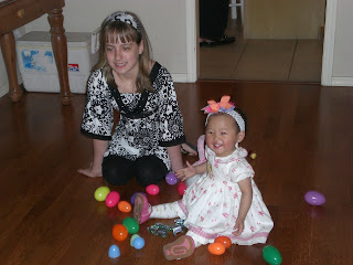 She is sleeping all alone in her bedroom. YEA! I had been sleeping in a twin bed in Olivia's room. I moved out the Wednesday before Easter. For the first 4 days she would wake up in the middle of the night and I would end up back in her room. She sometimes still wakes up in the middle of the night but I just go in there, lie her back down, leave and she is ok.